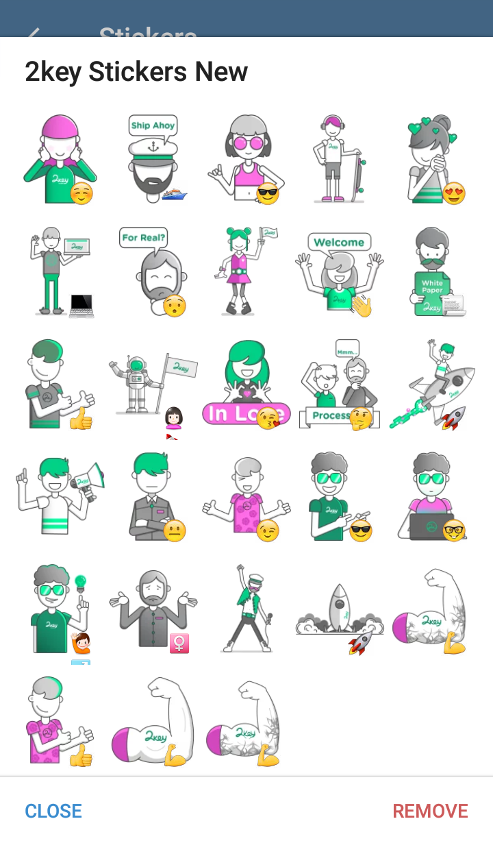 Custom Design Illustrations for Telegram Stickers for 2key.network designed and illustrates by Priel Hackim using Adobe illustrator